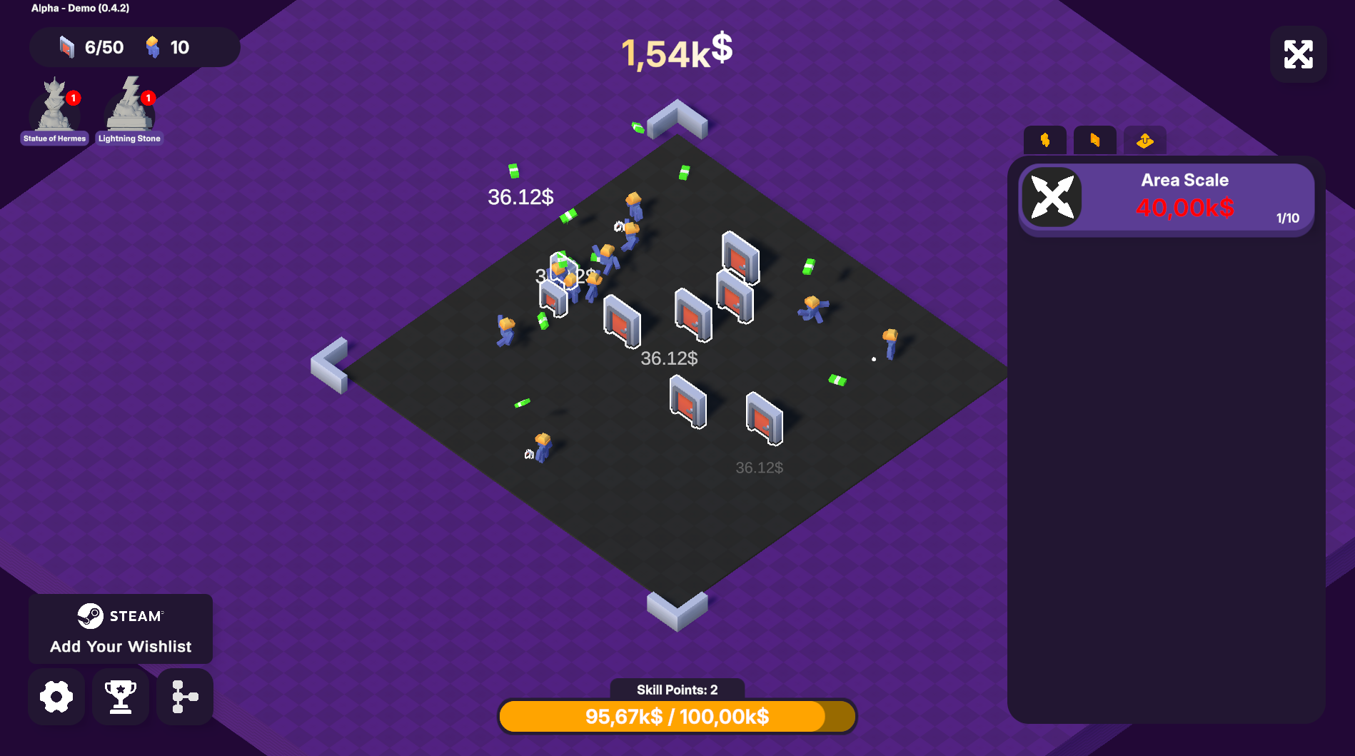 i have a lil feedback for now better described tooltips like worker speed increased in% or something like that you dont know what will be increased and no stats to see and last but not least better information how to get shrines or that get skill points will reset and so on